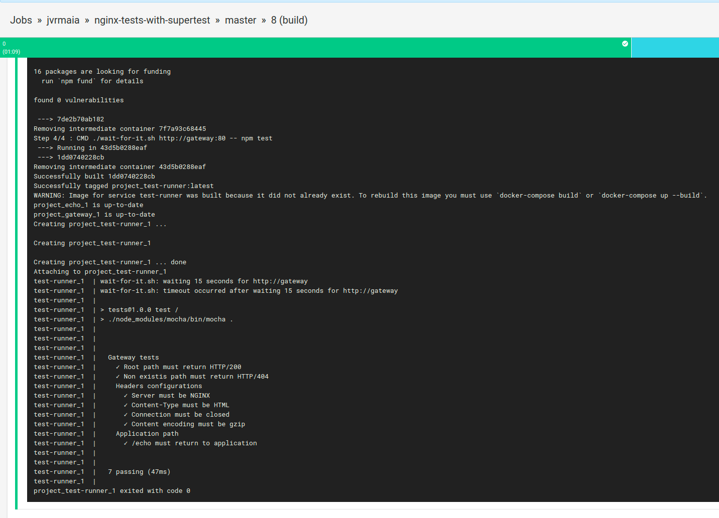 Procurando alguma solução para execução de testes de chamadas HTTP acabei encontrando como opção o SuperTest que é feito em JavaScript e podemos facilmente executar no nosso ambiente de integração contínua com Node.js. Apesar de, à primeira, vista ele ser um framework voltado ao Express.js, ele pode ser executado para testar qualquer aplicação Web sem se importar com o que seja, examente o que precisamos.
